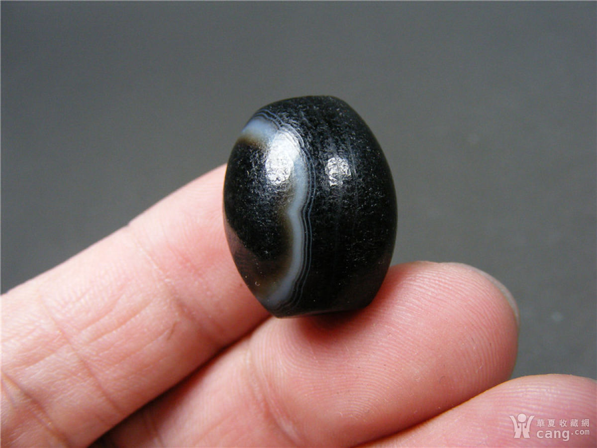 20 老西亚几十年的黑白双色缠丝玛瑙表面磨砂底工艺鼓腹小管珠