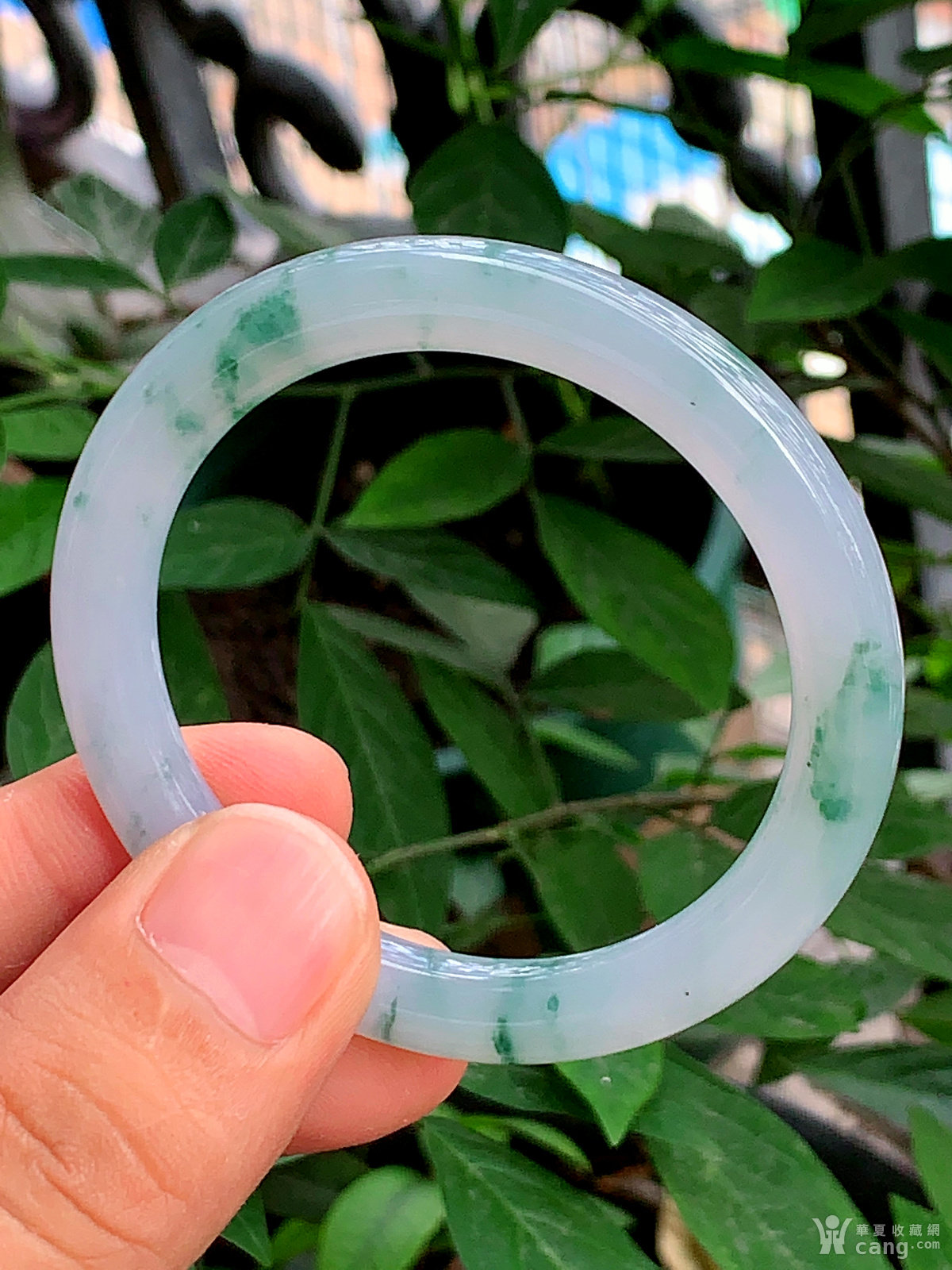 缅甸天然翡翠A货冰透水润飘花圆条手镯50.5圈口
