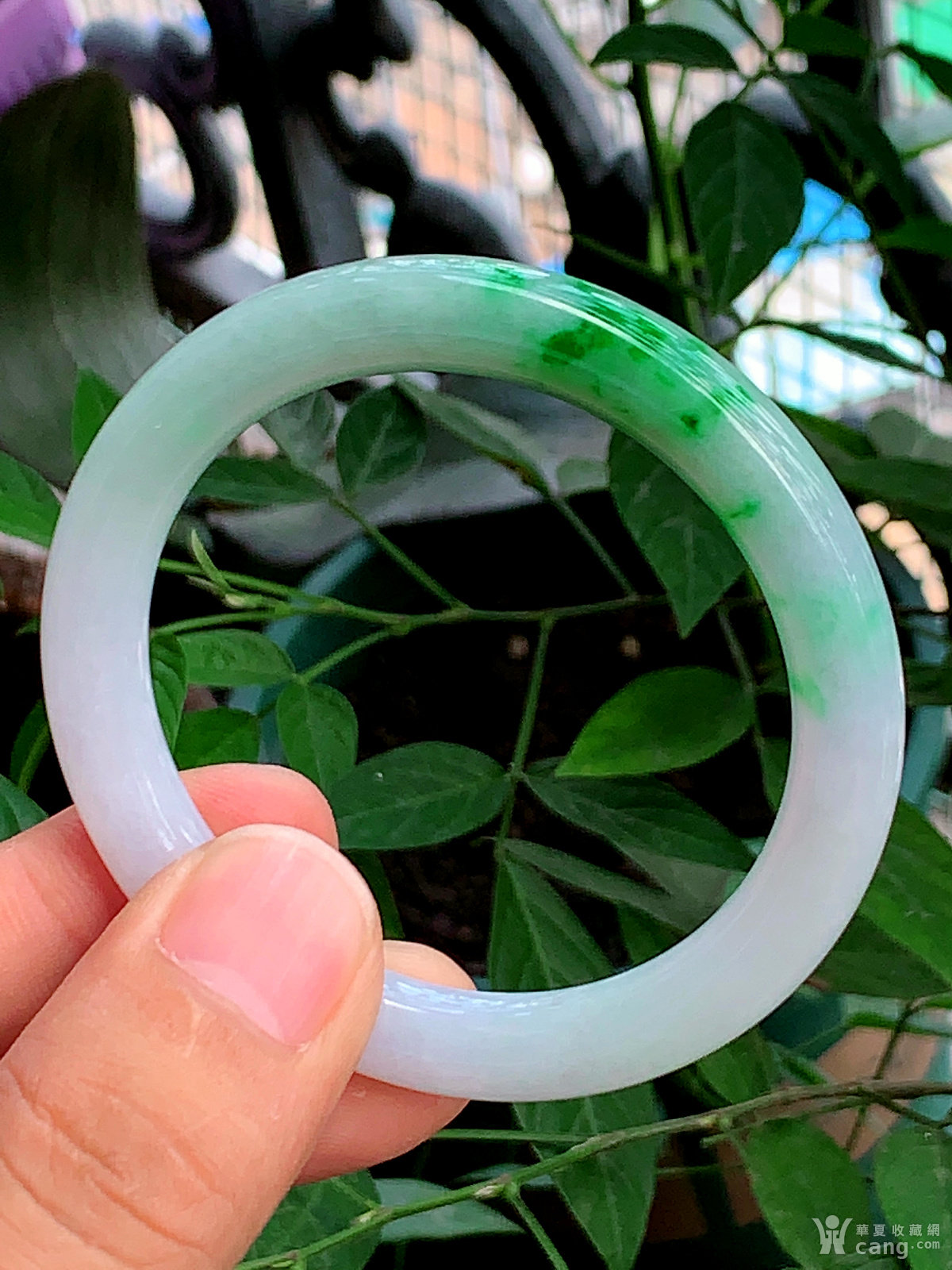 缅甸天然翡翠A货冰润飘花圆条手镯53.3圈口
