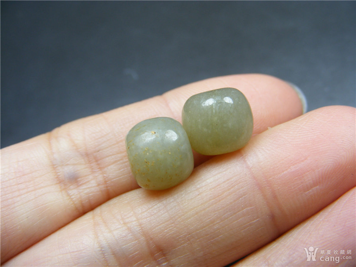 222 和田玉带沁直筒鼓腹大勒子珠2颗一起拍