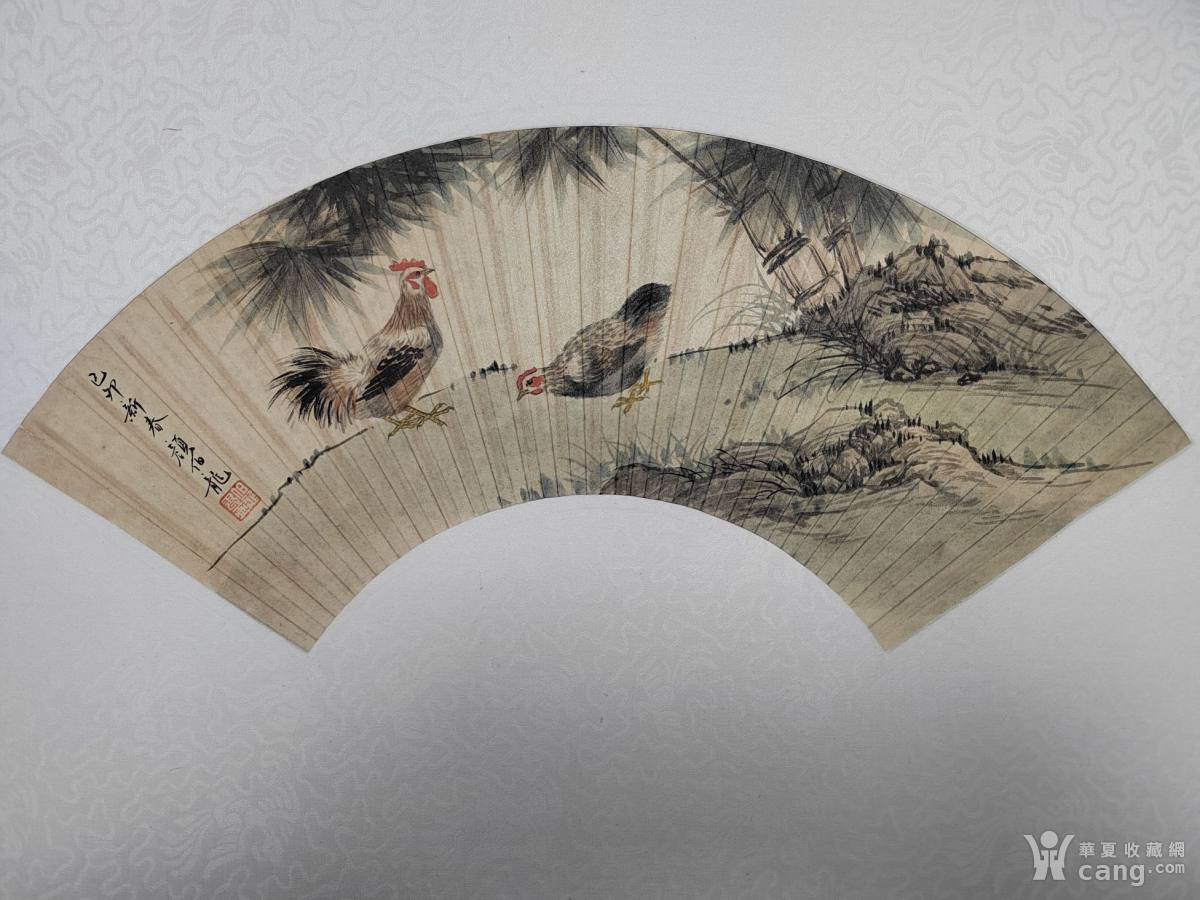 老扇面 老字画 手绘公鸡图 大吉大利 老扇面 包手绘