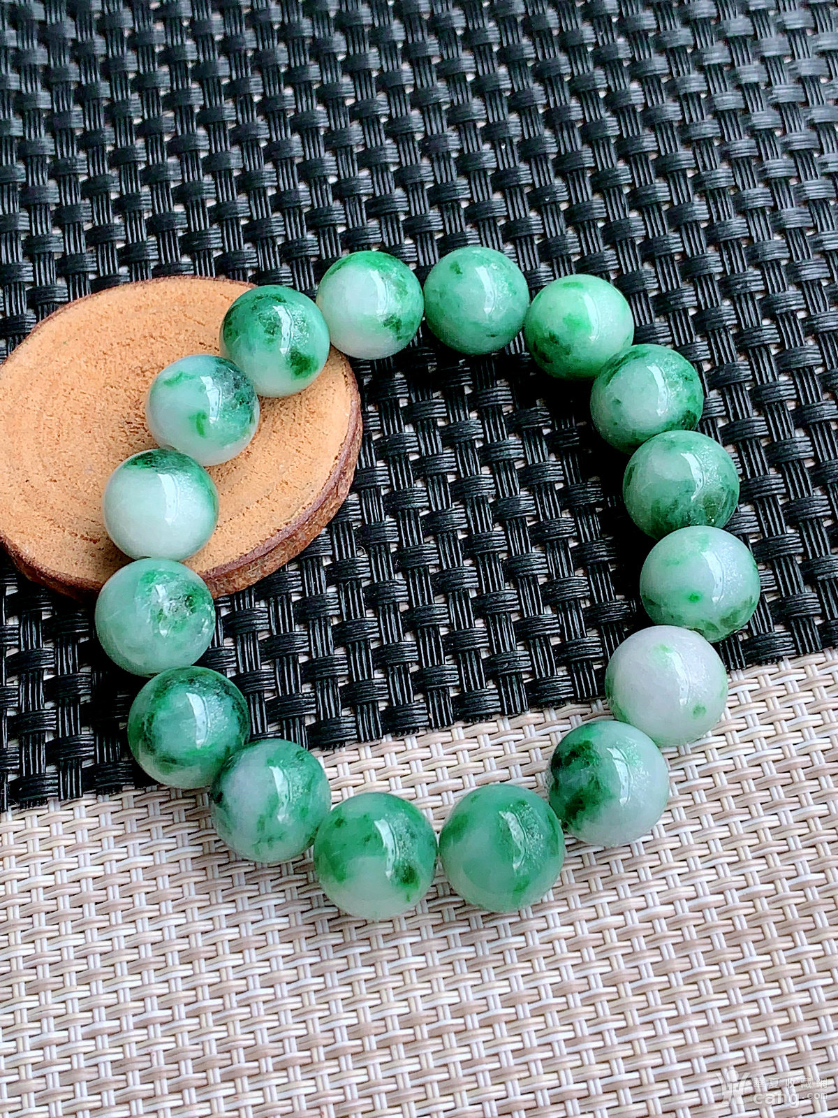 缅甸天然翡翠A货冰润飘花圆珠手串