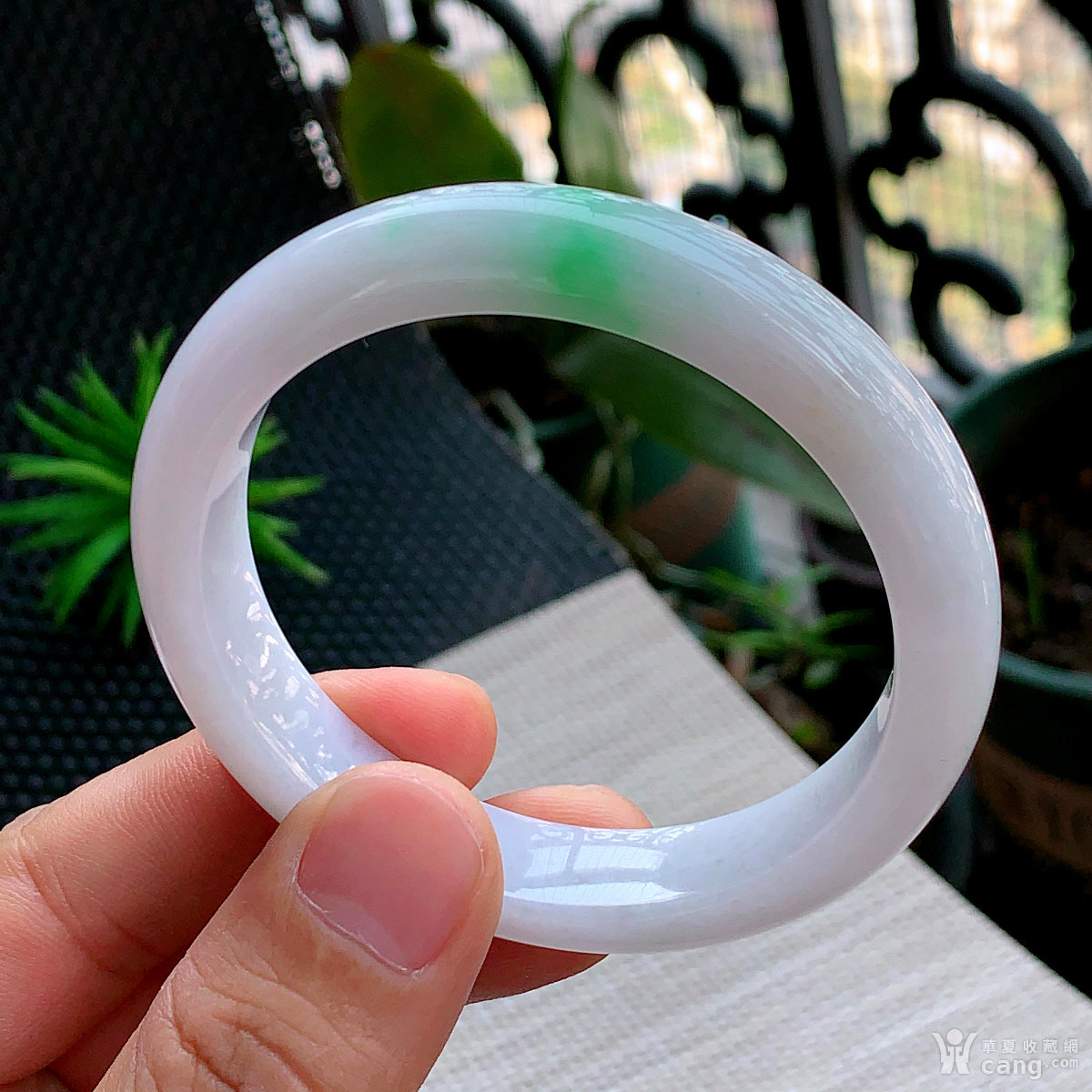 缅甸天然翡翠A货冰润飘绿宽边手镯59.8圈口