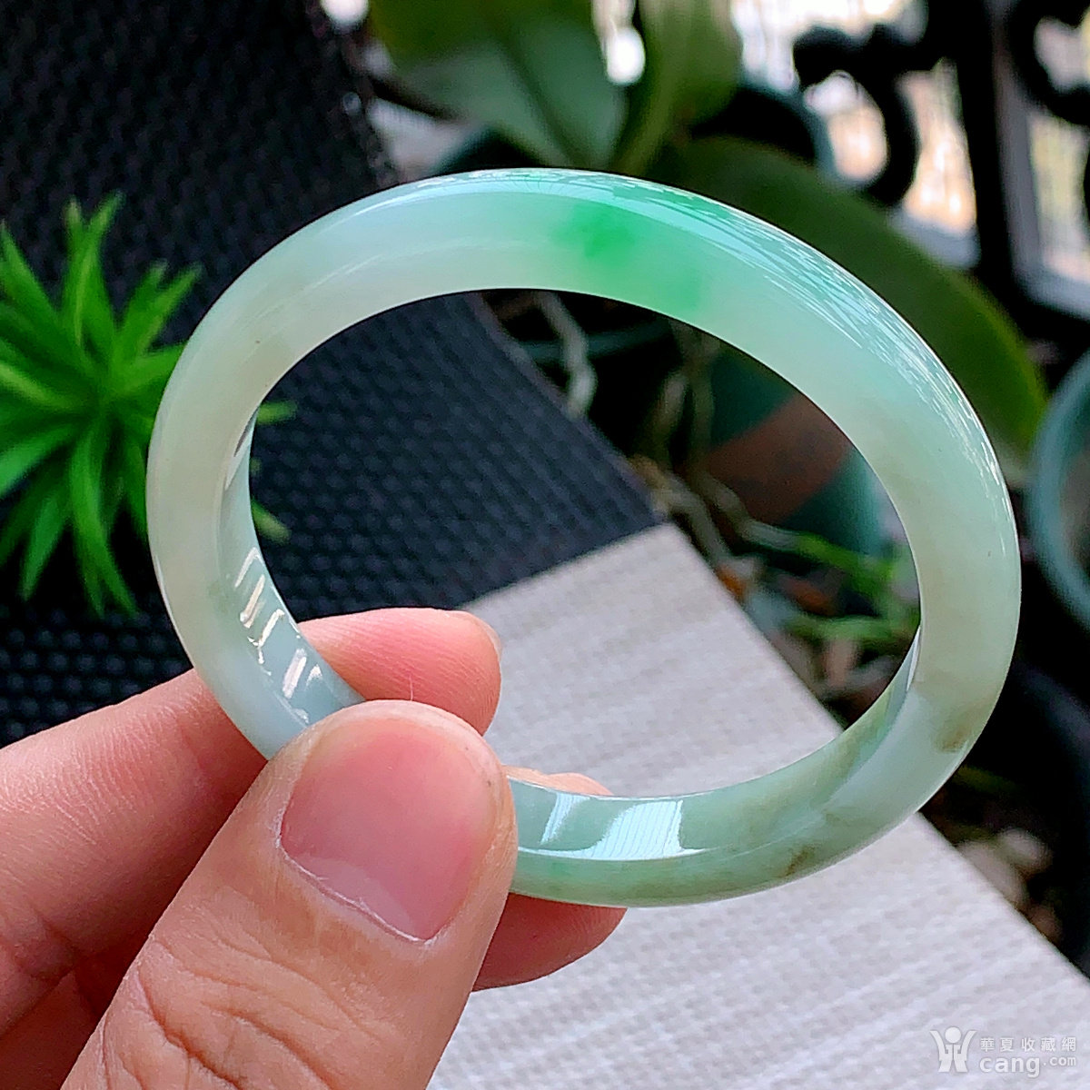 缅甸天然翡翠A货冰透水润飘绿宽边手镯52.6圈口