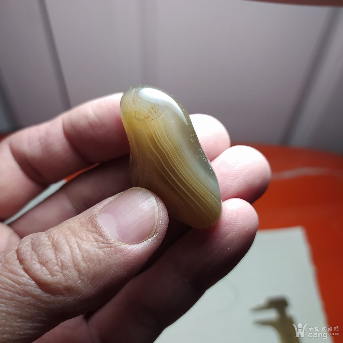 青花瓷器盖子,有小磕,有冲线如图所示