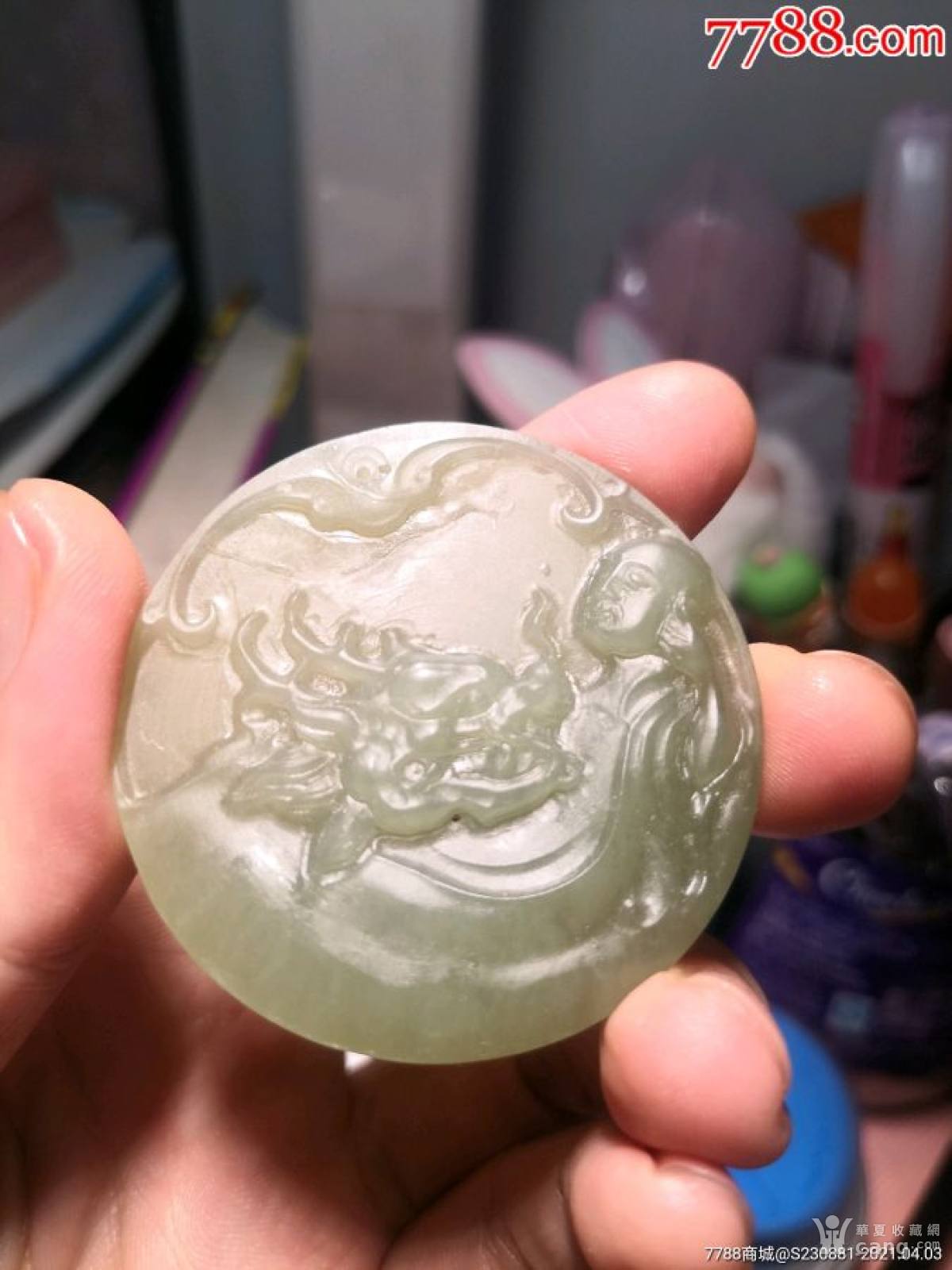 青花瓷器盖子,有小磕,有冲线如图所示