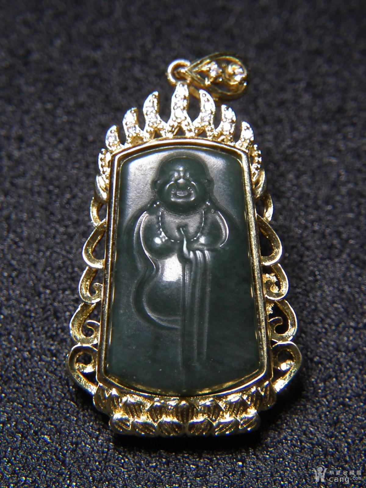 Q19 正宗和田青玉浮雕弥勒佛镶嵌合金与人工锆石水钻大坠佩