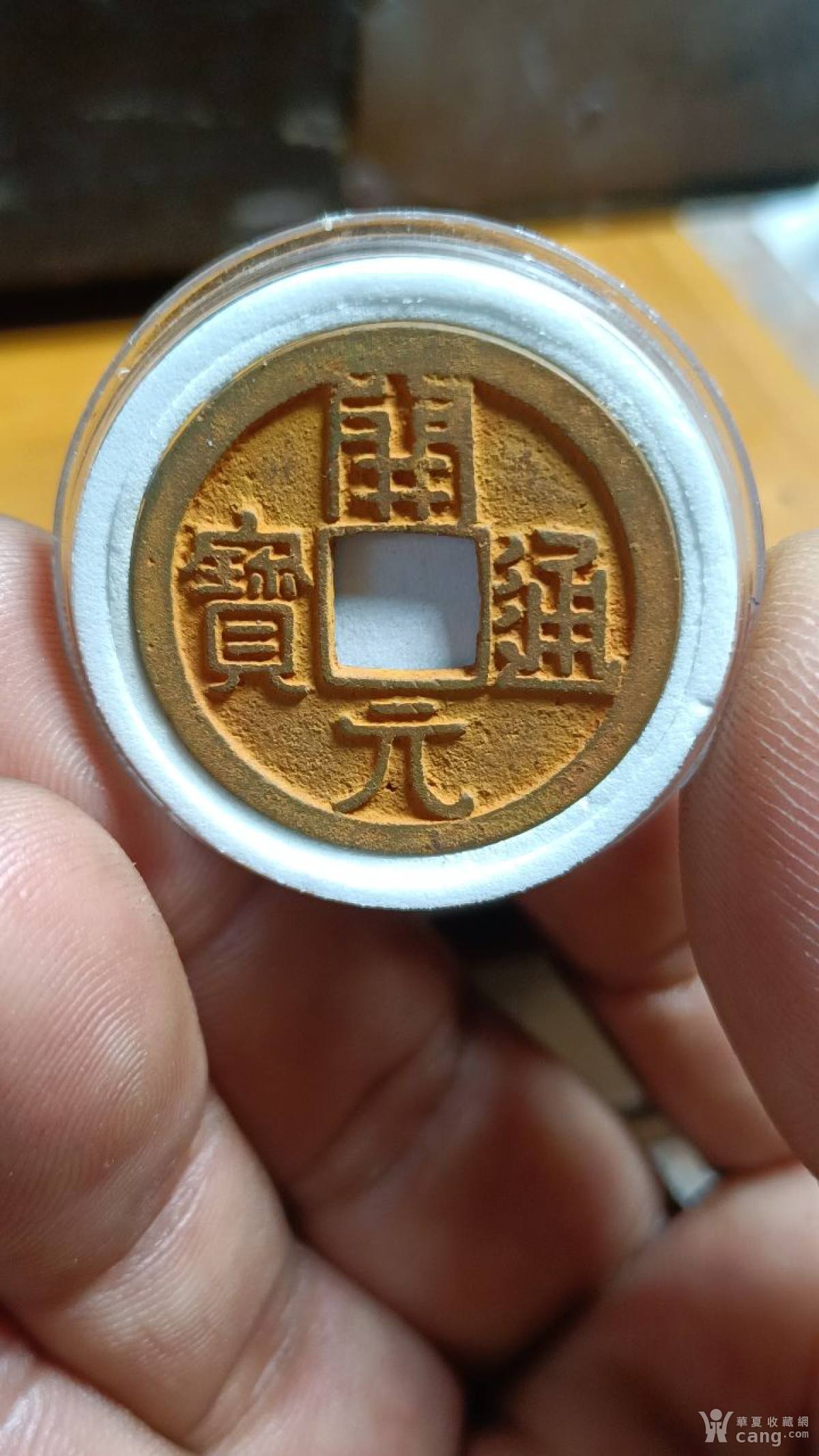 青花瓷器盖子,有小磕,有冲线如图所示