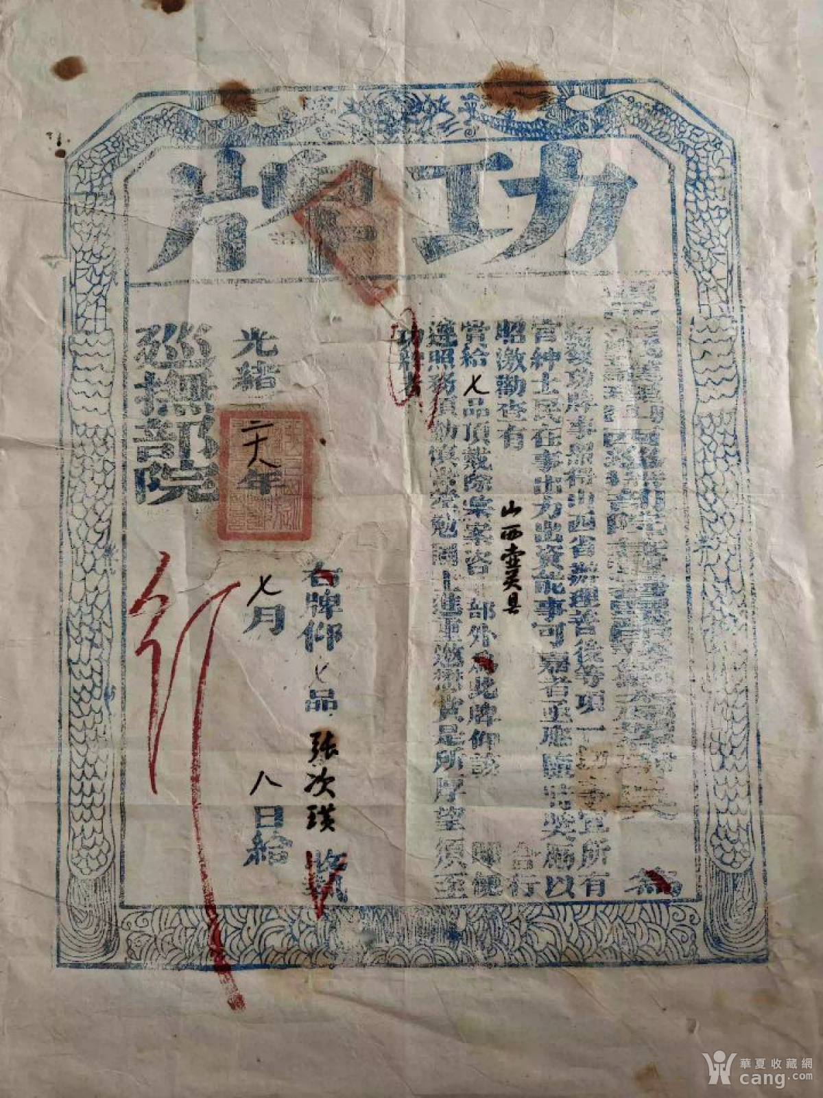 清代光绪年壶关县功牌 功牌是封建时代赏给有功者的奖牌。清朝用