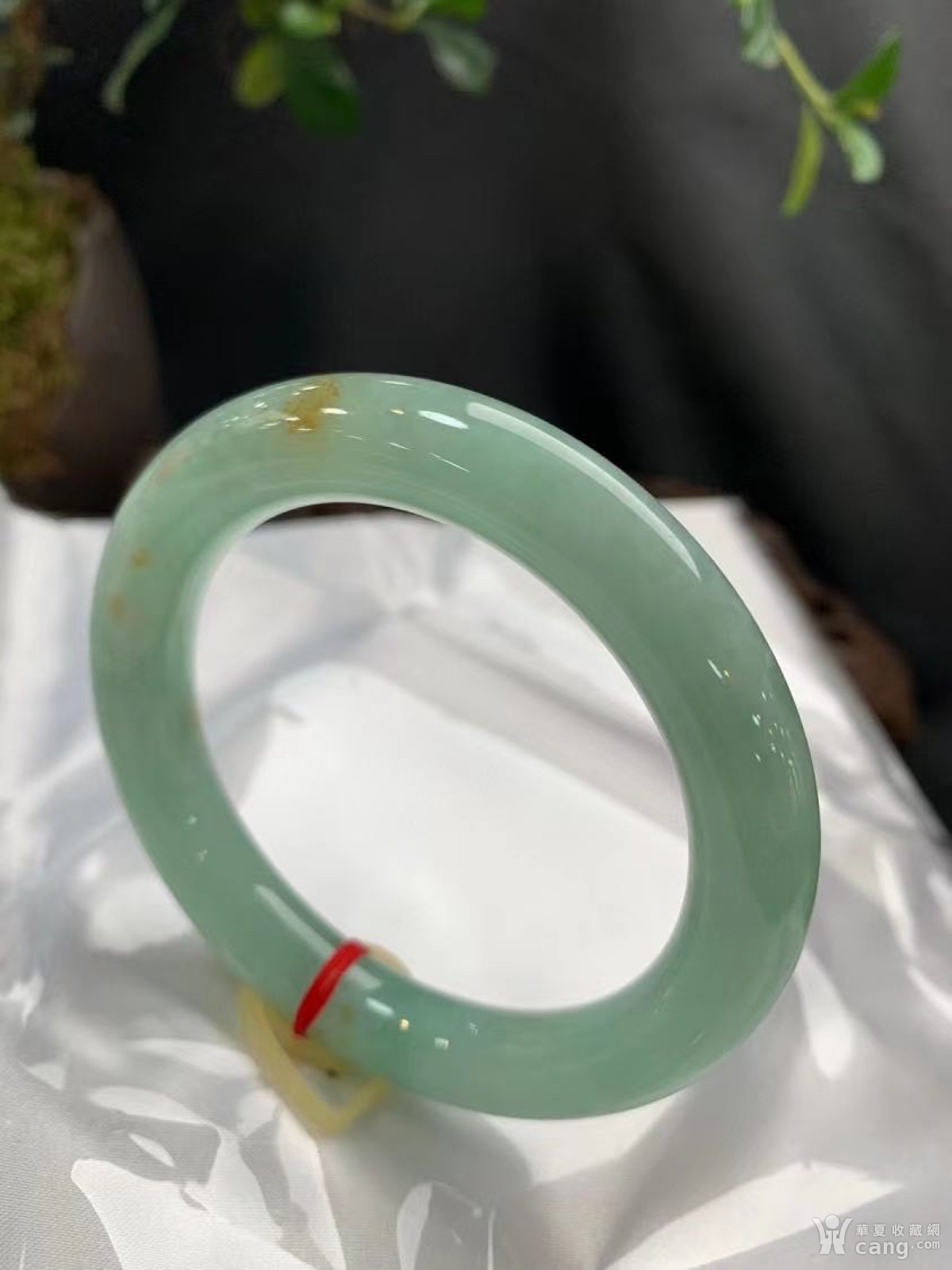 翡翠手镯54.8圆条豆色圆条撒金完美