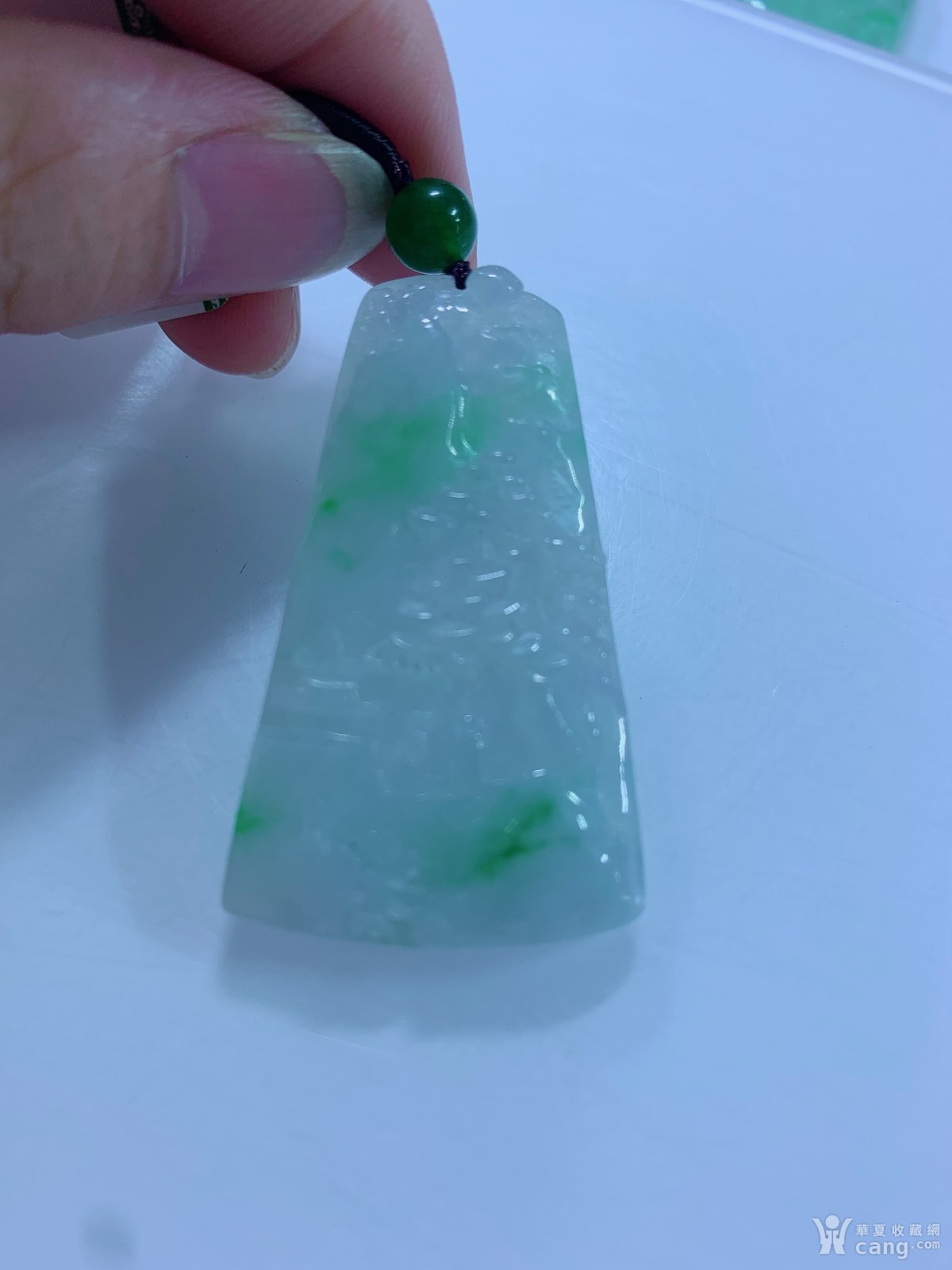 自然光实拍!天然A货飘绿山水牌