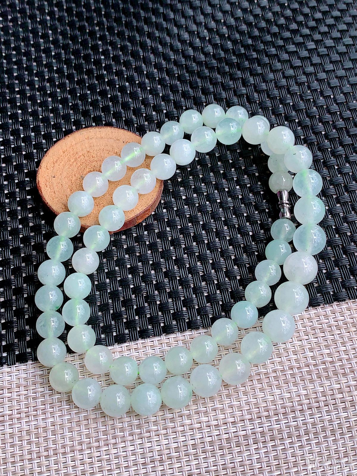 缅甸天然翡翠A货冰透水润浅绿塔珠项链