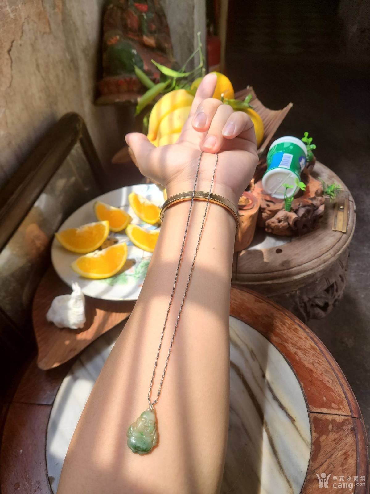 清代翡翠佛公925银项链吊坠一套
