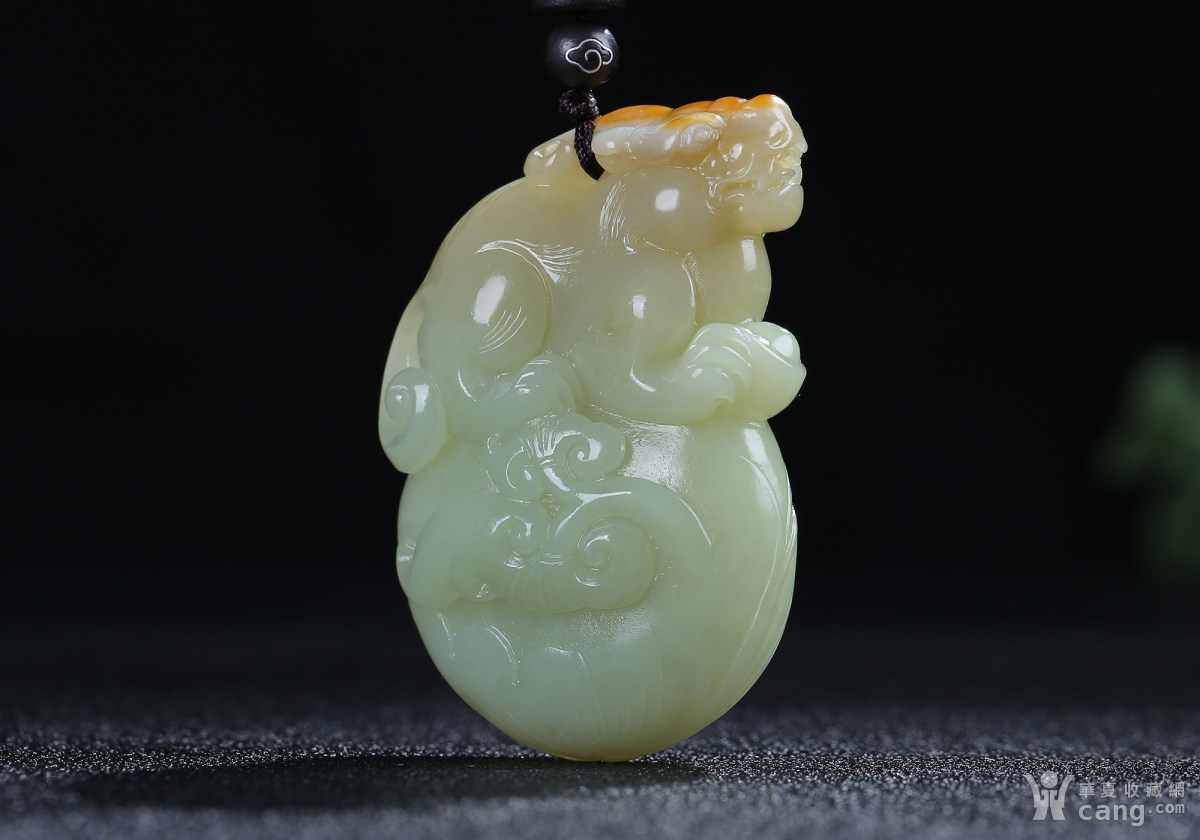 [福寿如意]天然玉石和田玉青白玉带色瑞兽如意挂件58.17g