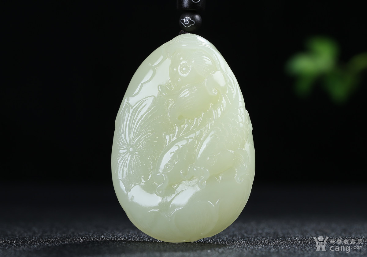 [连年有余]天然玉石和田玉黄玉莲花鱼挂件吊坠55.54g