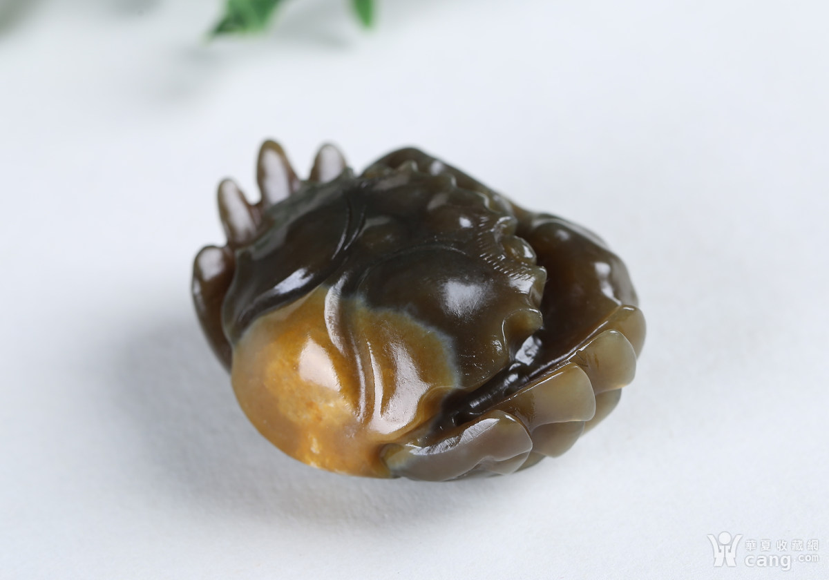 【八方来财】天然玉石和田玉糖玉带皮螃蟹挂件吊坠33.46g