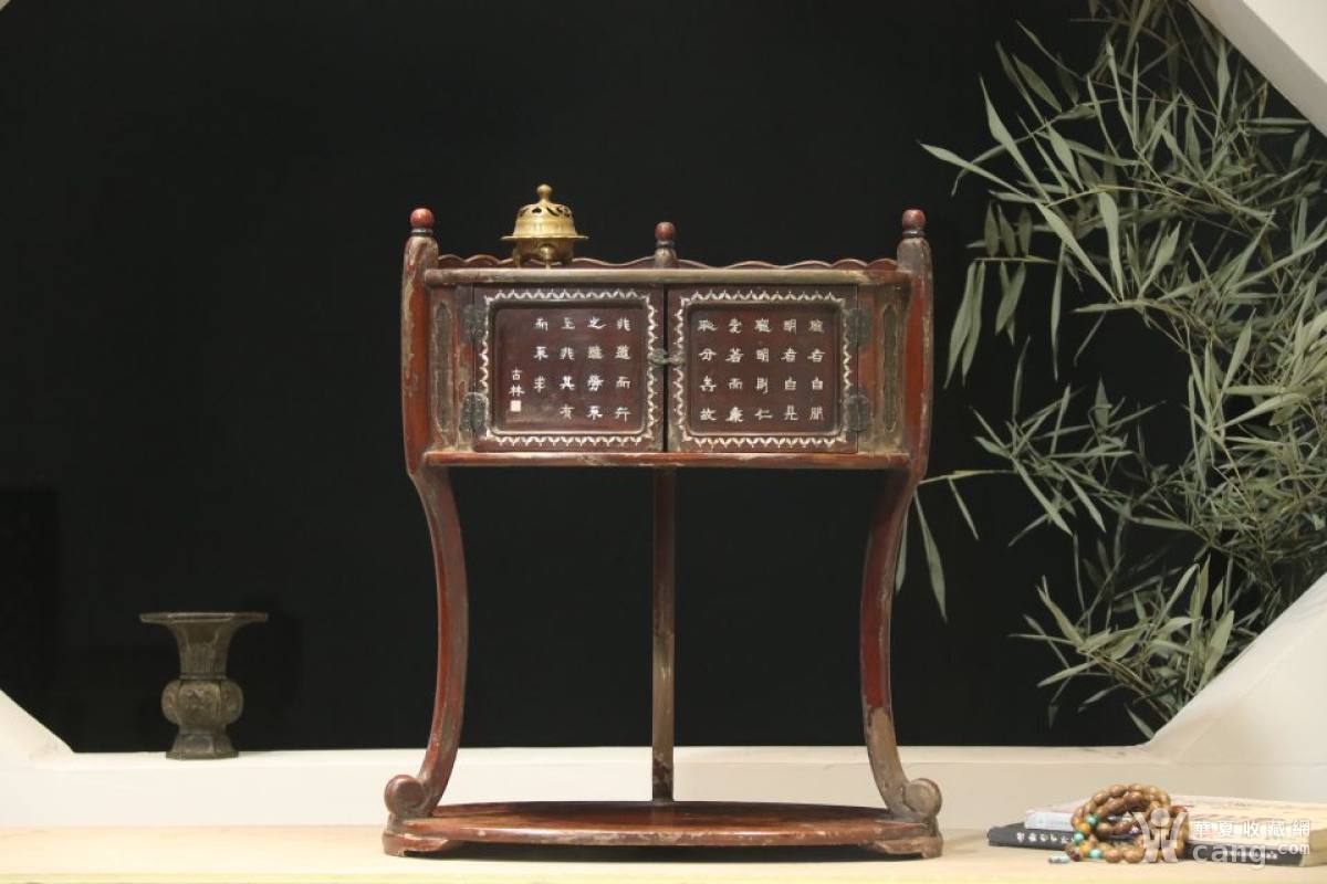 文房 朱红漆 ~ 香几 做工独特,线条流畅,对门嵌螺钿文字