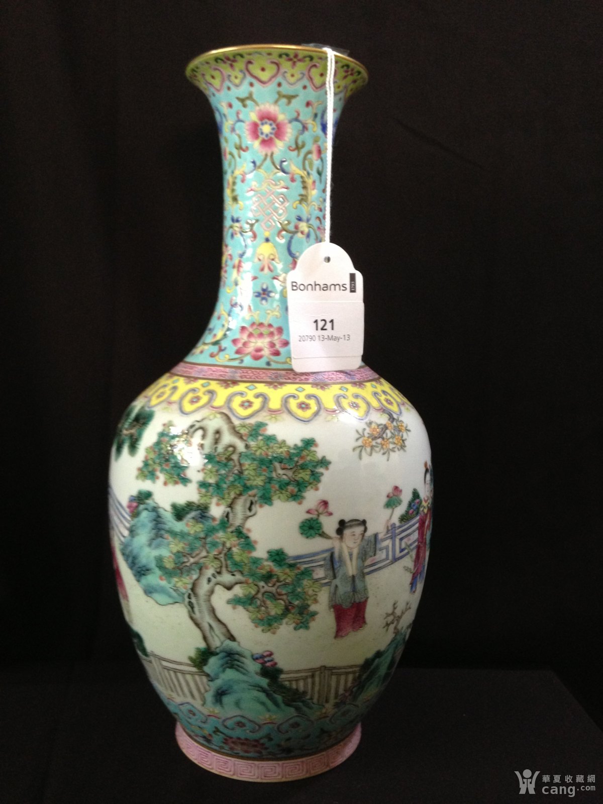 ‘大清嘉庆年制’款粉彩九子喜戏赏瓶。