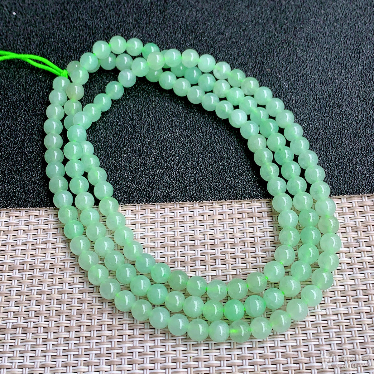 缅甸天然翡翠A货冰透水润满绿圆珠项链