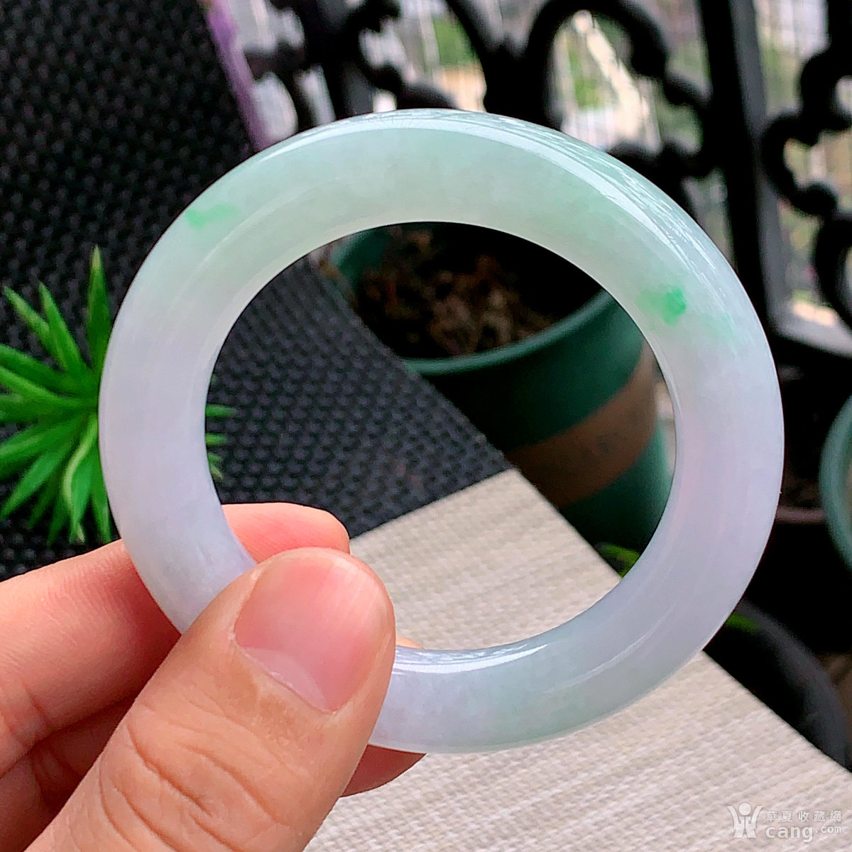 缅甸天然翡翠A货冰透水润春带彩圆条手镯53.3圈口