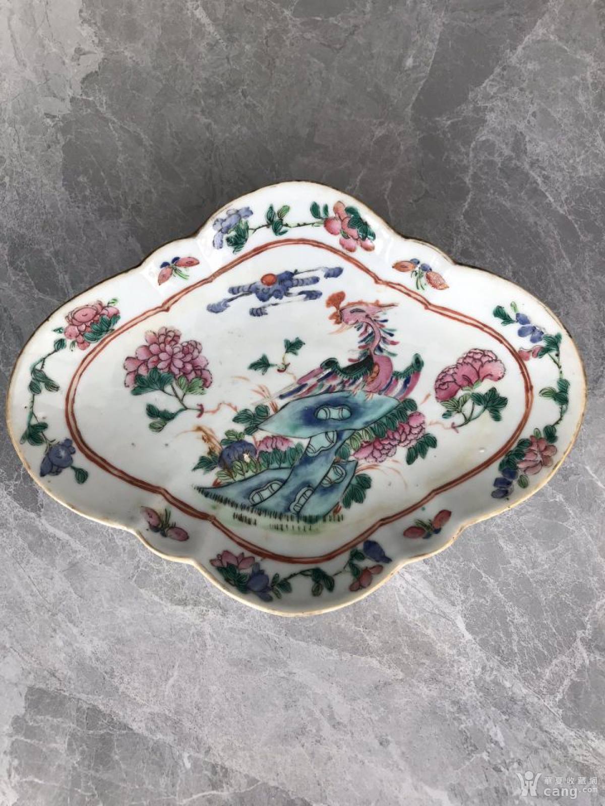晚清粉彩凤凰牡丹供盘