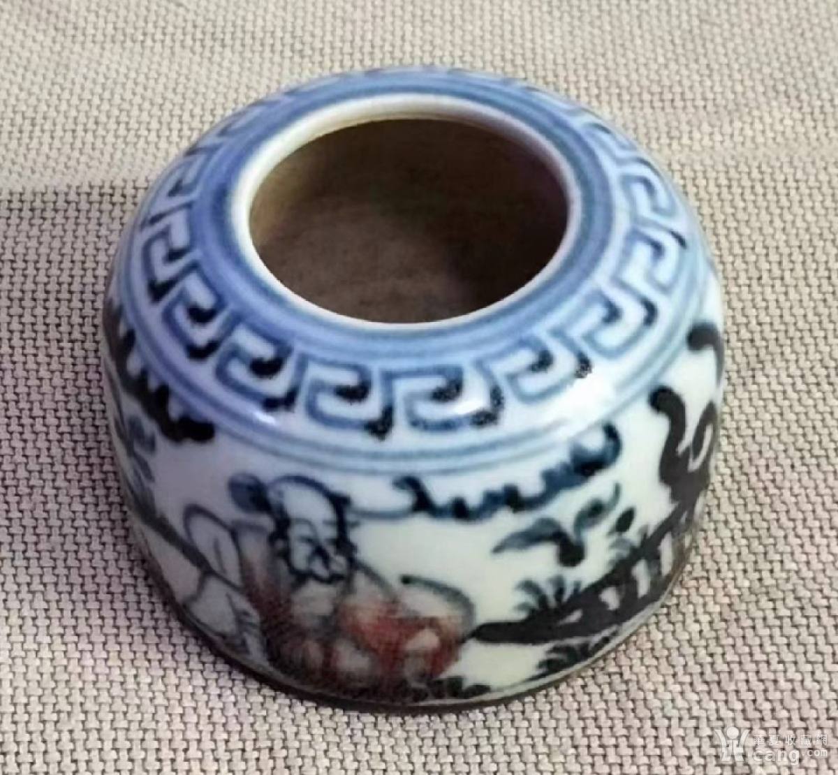 青花釉里红人物笔洗