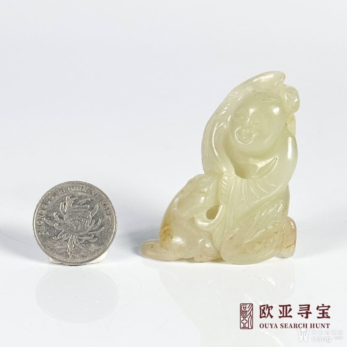 欧洲回流创汇期和田白玉籽料镂空圆雕伏虎童子摆件