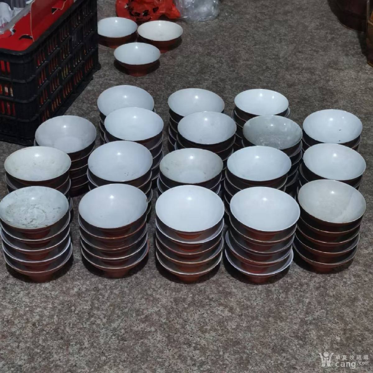 民俗老物件怀旧老家具,5 6 7年代红釉高足碗,多种底款 特