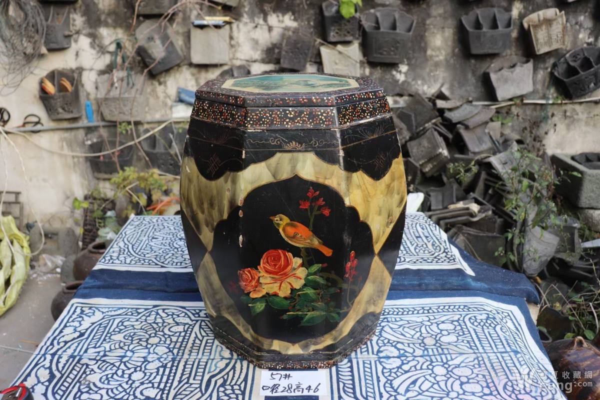 民俗老物件 怀旧老家具 老木手绘木桶凳一个 花鼓桶 鼓凳