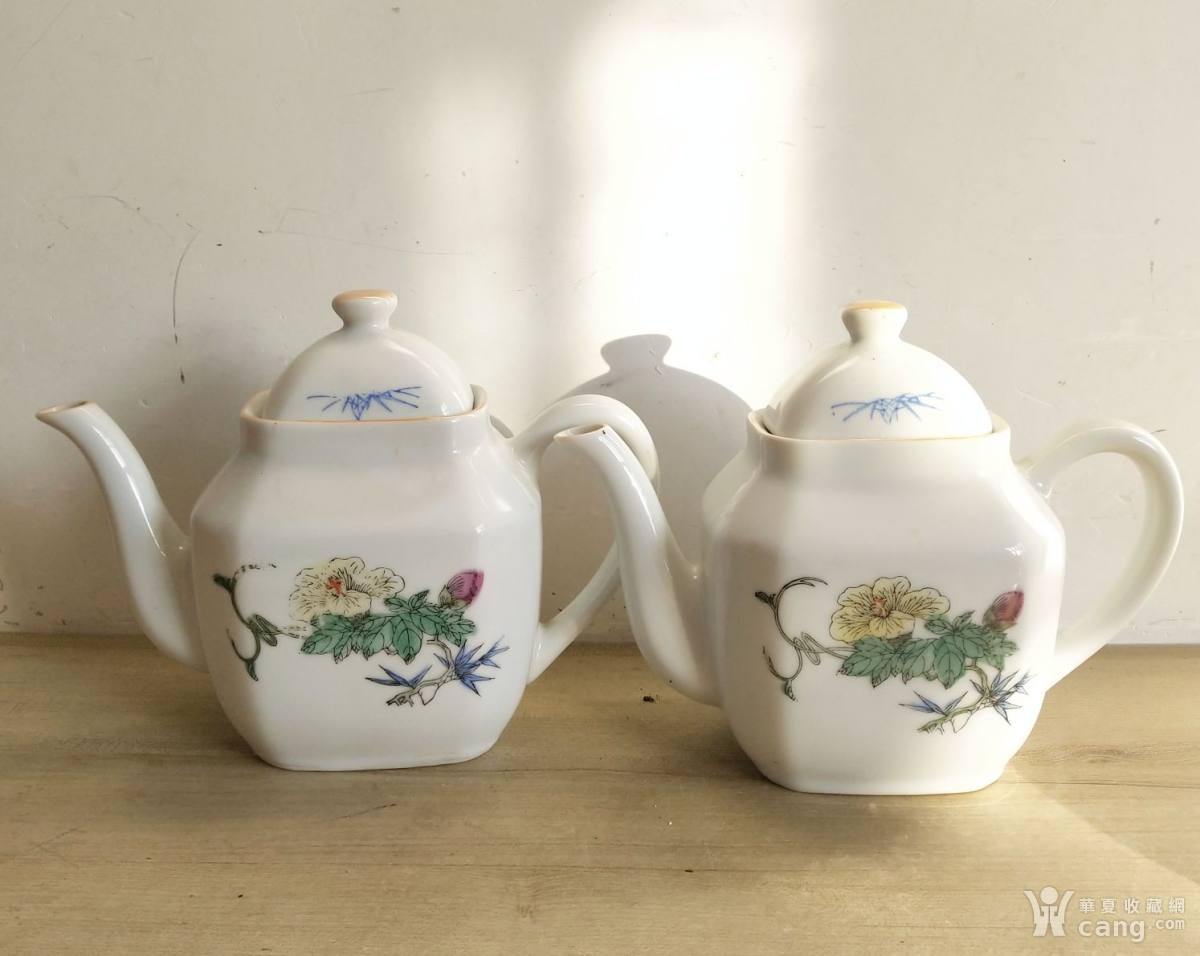 一对567手绘扁方执壶