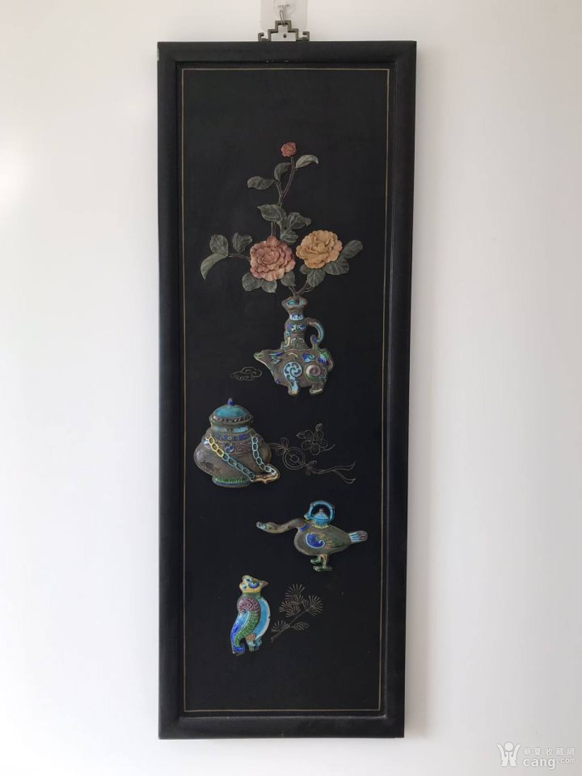 民国大漆嵌玉嵌铜烧蓝挂屏