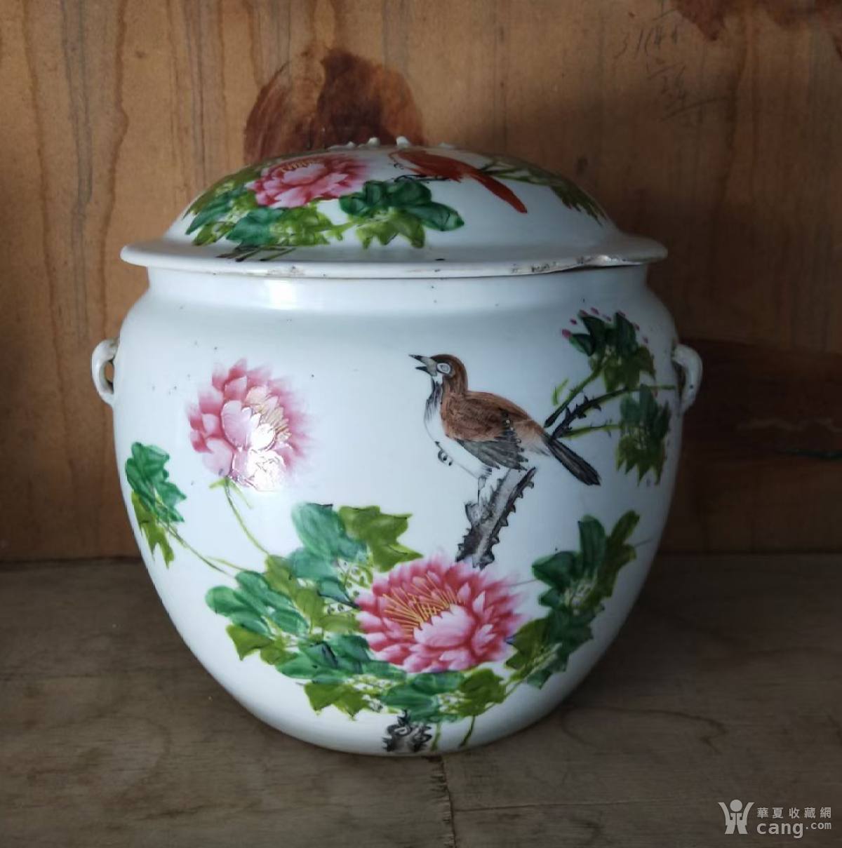 民国绛彩花鸟大盖罐