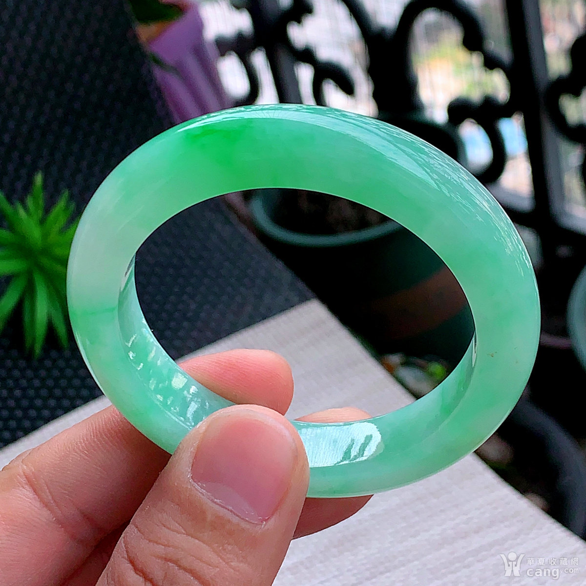 缅甸天然翡翠A货冰透水润飘阳绿宽边手镯53.8圈口