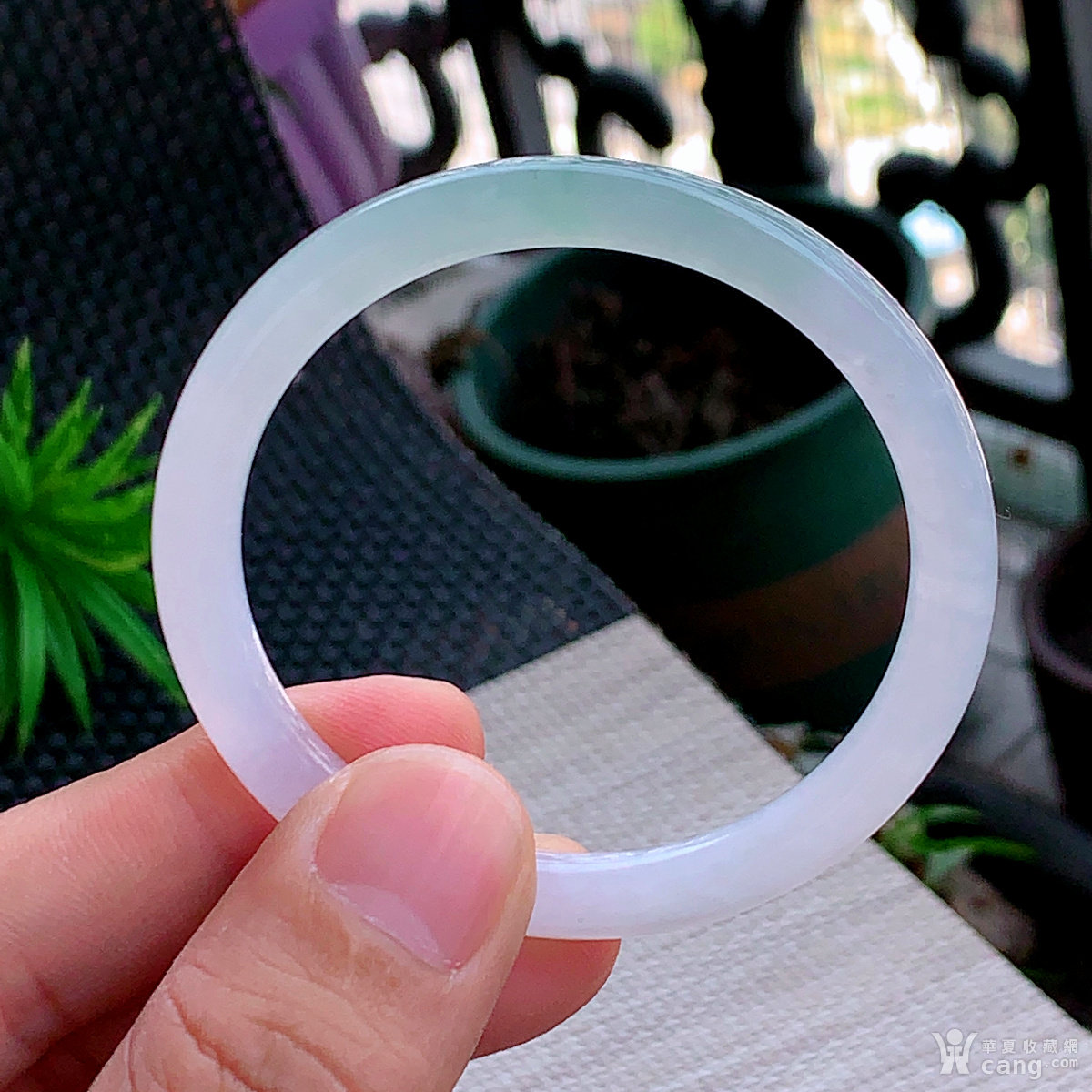 缅甸天然翡翠A货冰透水润飘绿圆条手镯53.8圈口