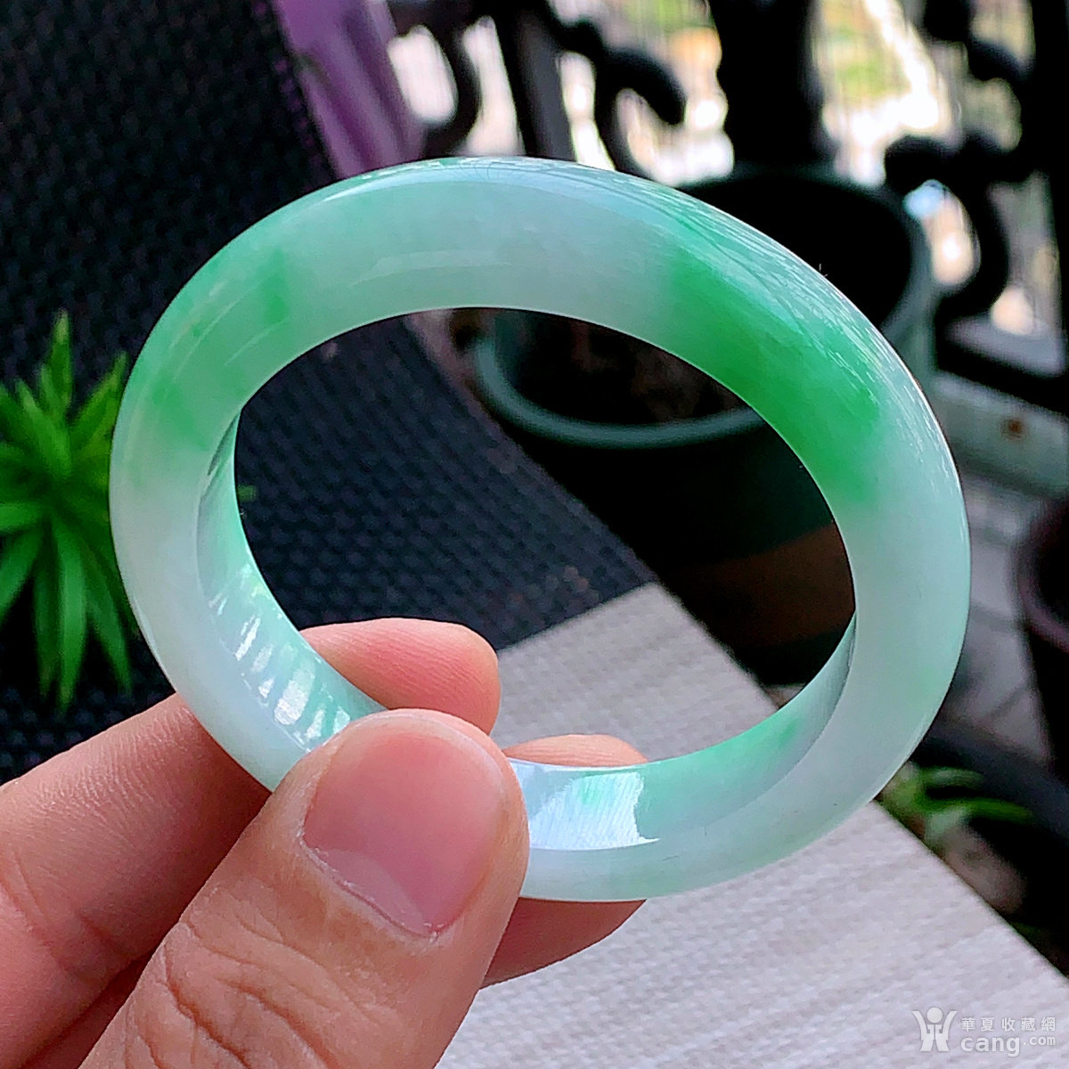 缅甸天然翡翠A货冰透水润飘阳绿宽边手镯52.8圈口