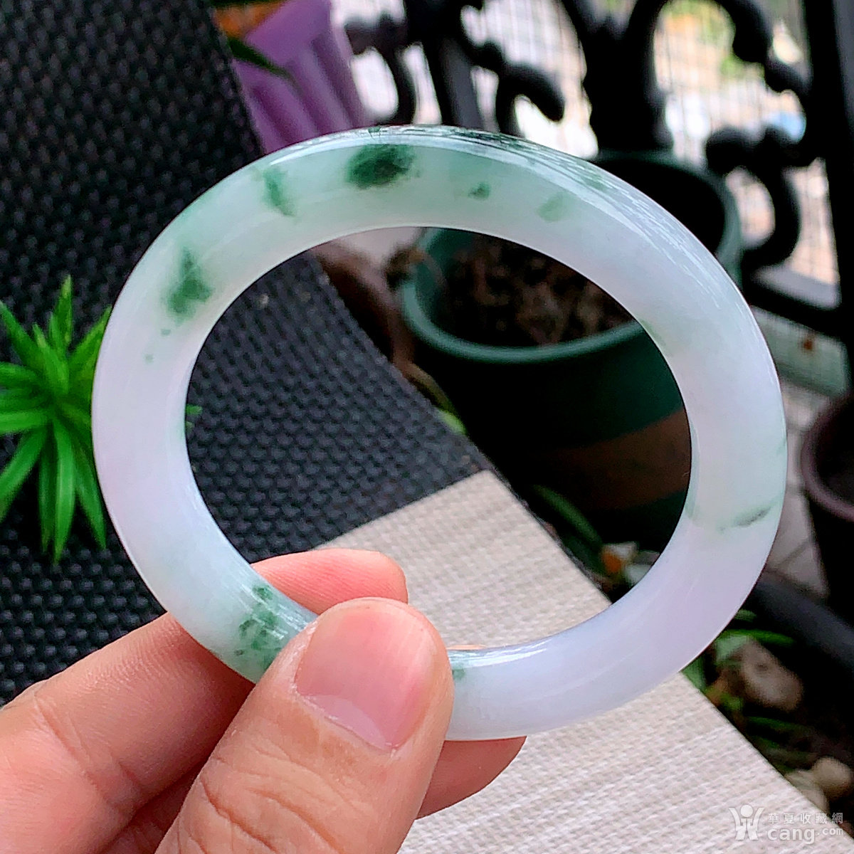缅甸天然翡翠A货冰透水润飘绿圆条手镯58.3圈口