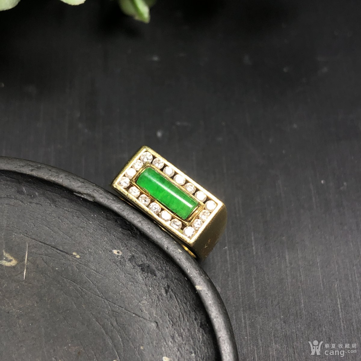 F672香港回流18K金伴钻镶老坑冰种满绿翡翠马鞍戒指