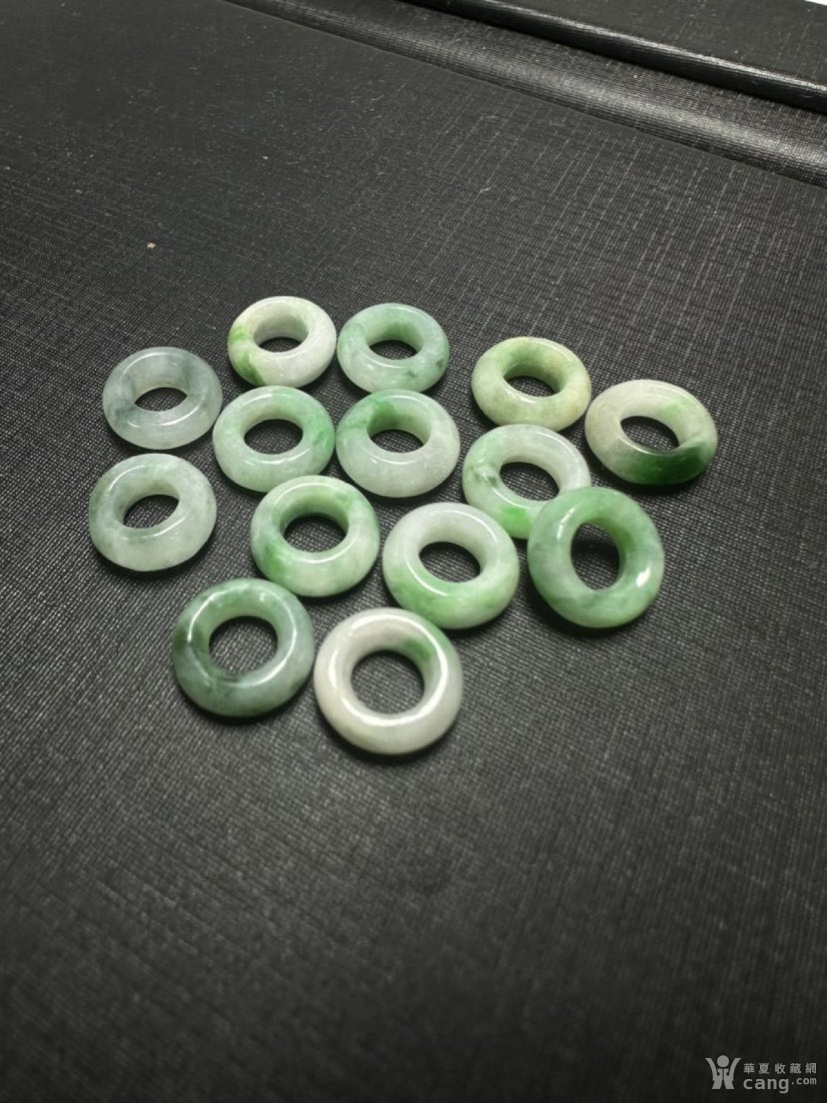 一手天然的翡翠小圈圈 有点颜色的 一组14个