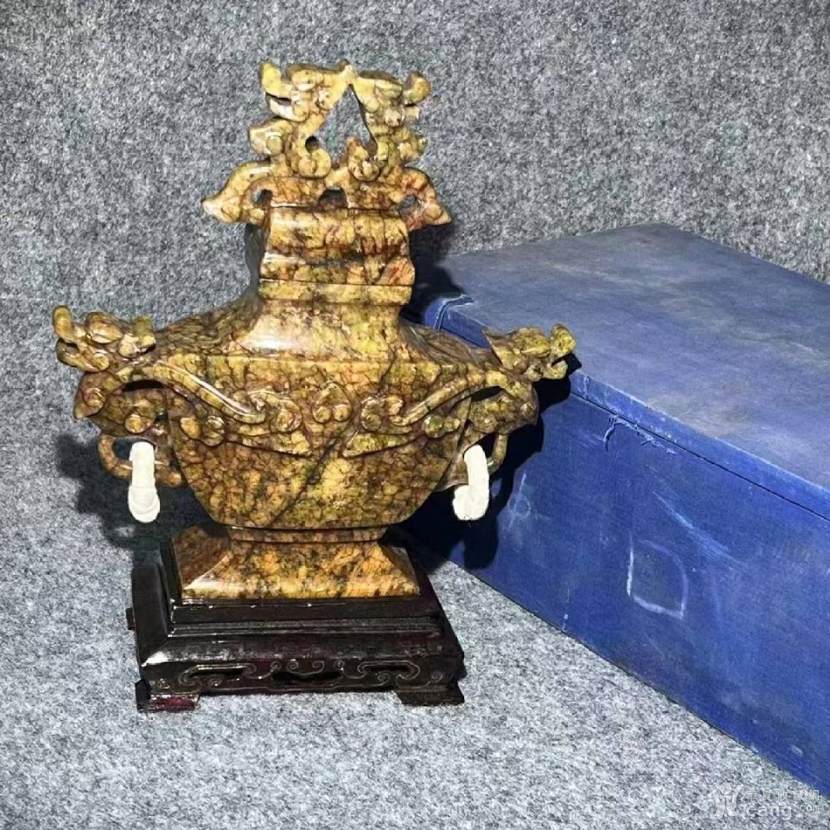 创汇时期岫玉活环螭龙纹盖四方玉瓶