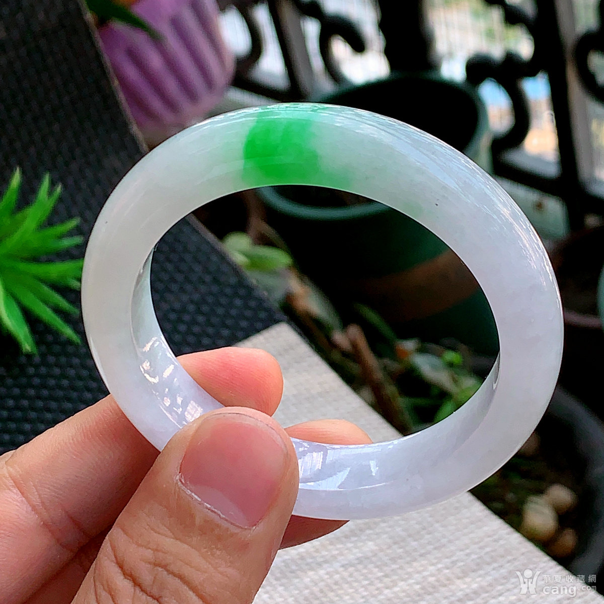 缅甸天然翡翠A货冰润飘阳绿宽边手镯55圈口