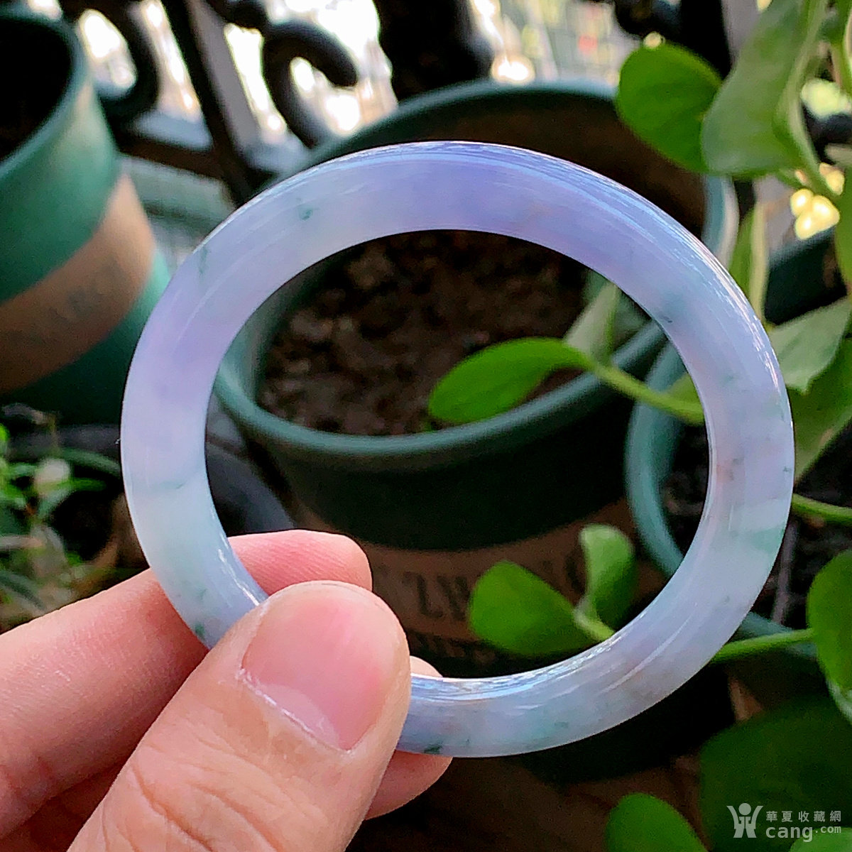缅甸天然翡翠A货冰透水润春带彩圆条手镯53.8圈口