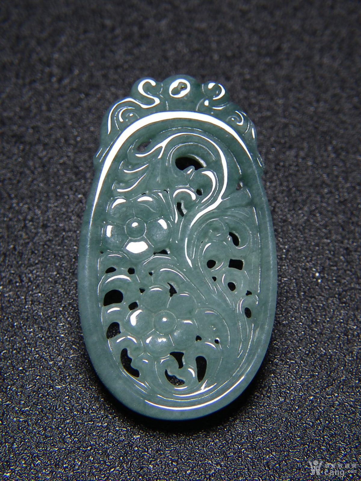 1224正宗A货冰种满蓝水翡翠带棉双面工镂空双花卉椭圆大佩