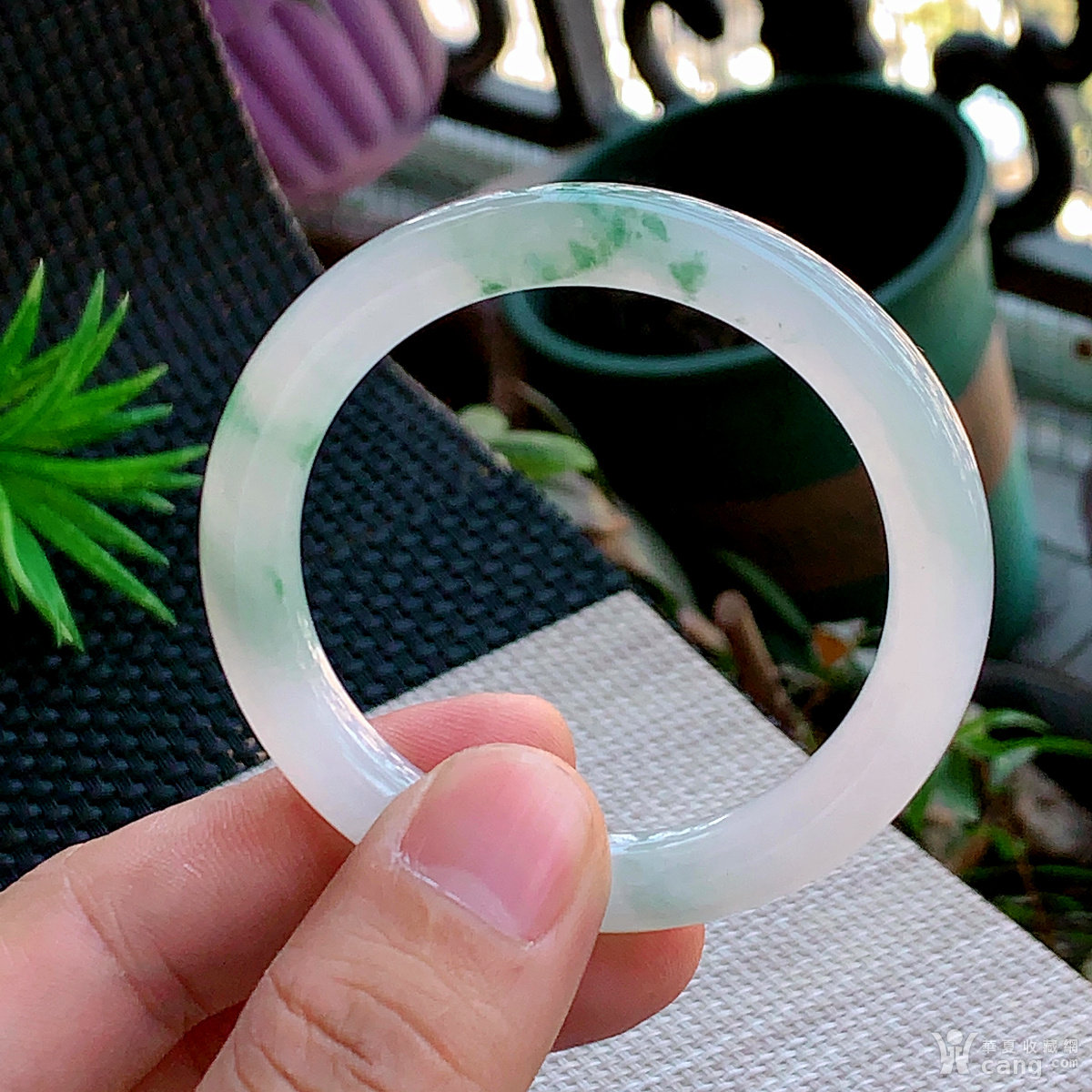 缅甸天然翡翠A货冰透水润飘绿圆条手镯52.2圈口