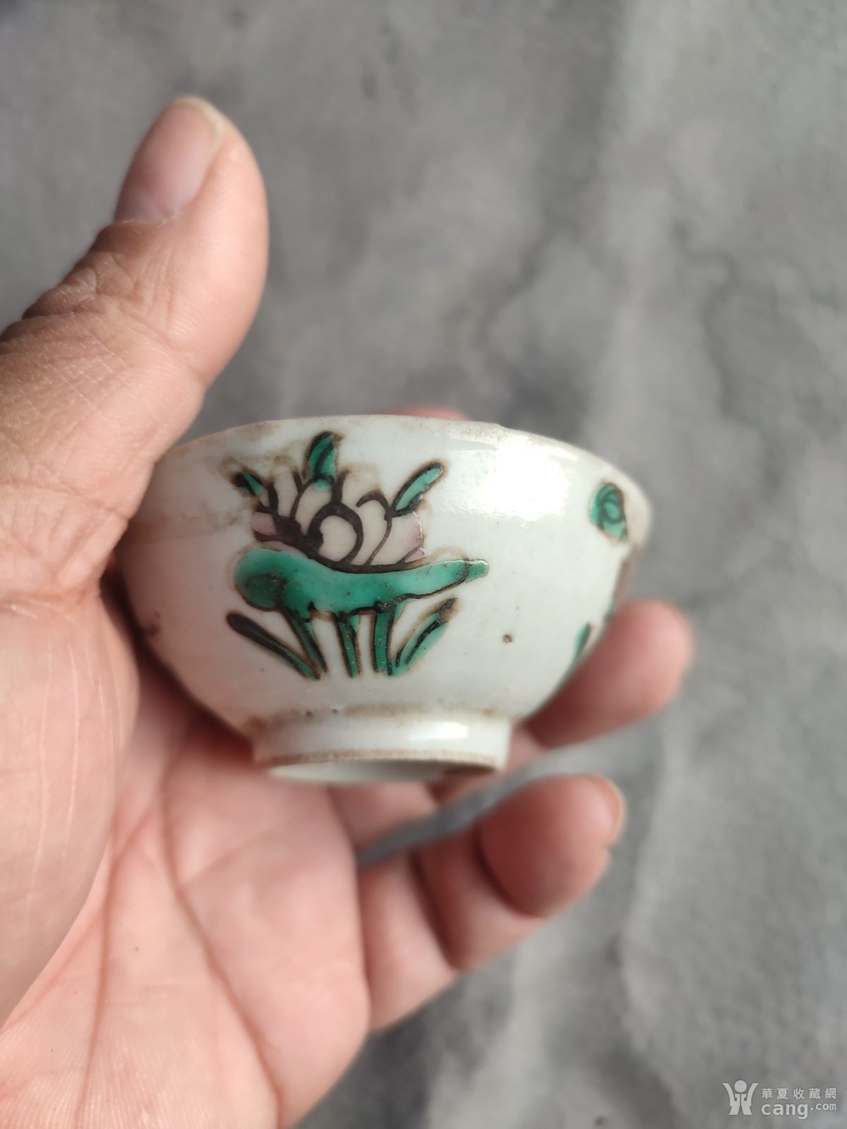 粉彩瓷器杯子,有冲线如图所示,其余完好