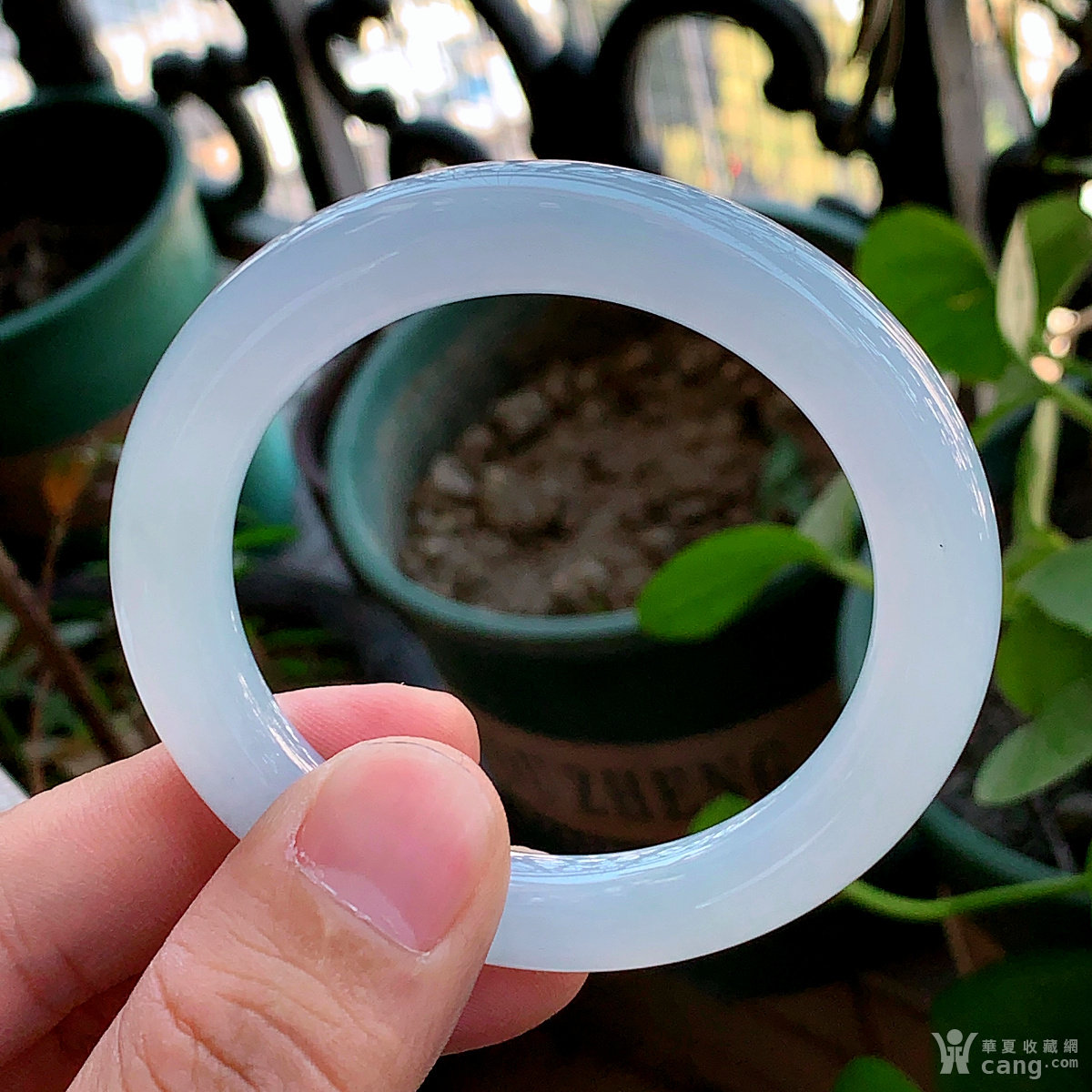 缅甸天然翡翠A货冰透水润起荧光圆条手镯54.3圈口