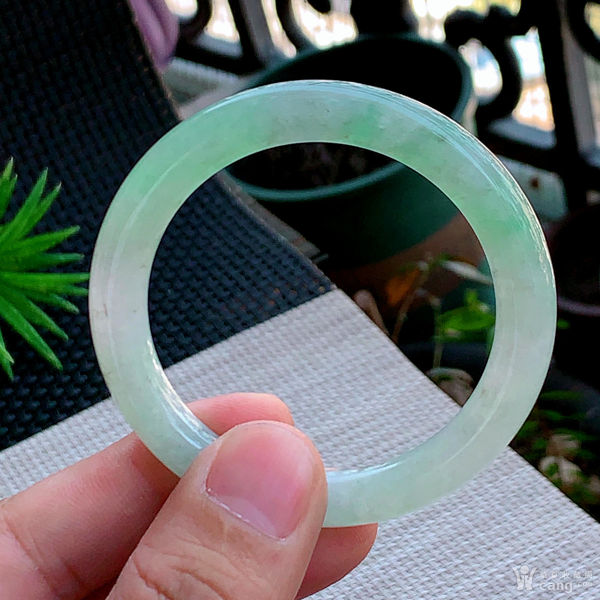 缅甸天然翡翠A货冰透水润飘绿圆条手镯53.1圈口