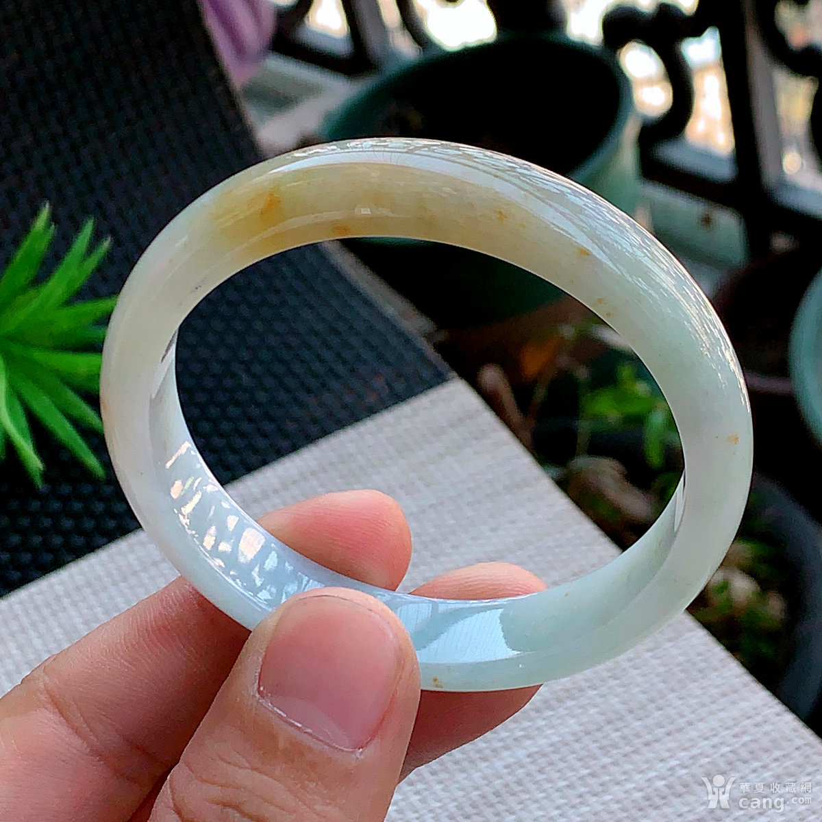 缅甸天然翡翠A货冰透水润飘黄翡宽边手镯58.3圈口