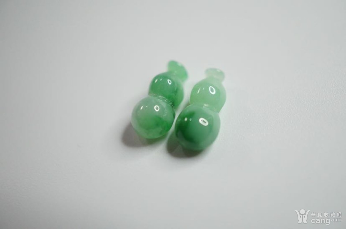 回流创汇的老物件翡翠葫芦飘绿戒面镶嵌件一对 很不错天然的E1