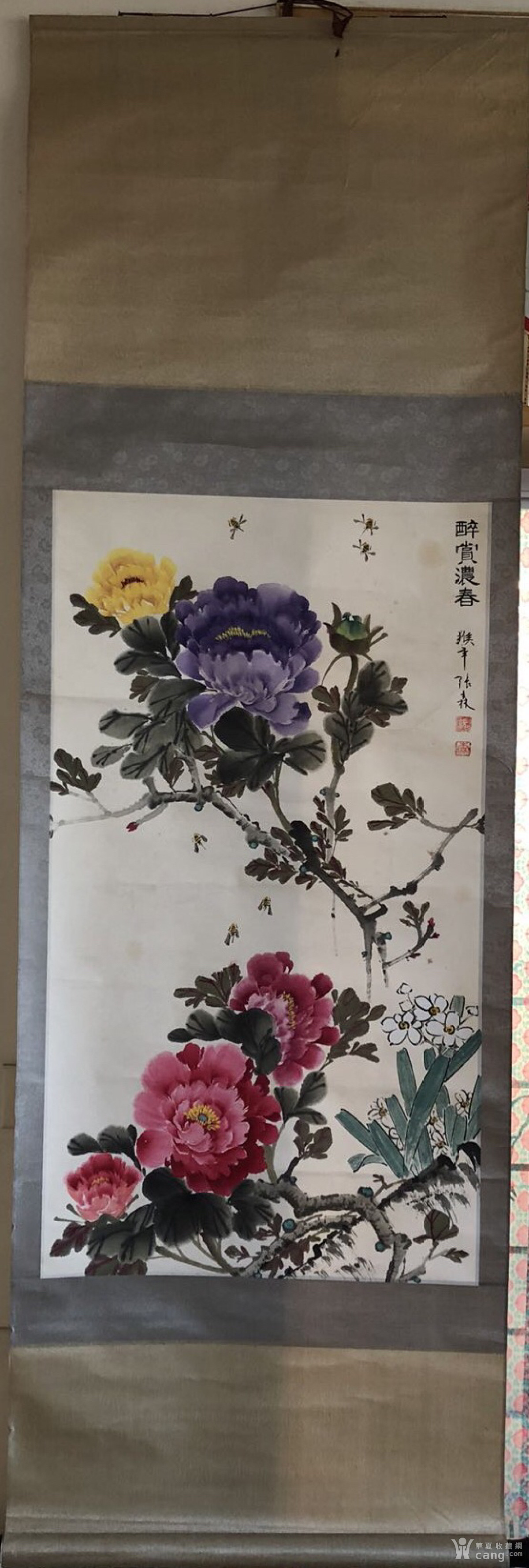 纯手绘画家原创原稿没落款花鸟画.牡丹富贵图91x54cm