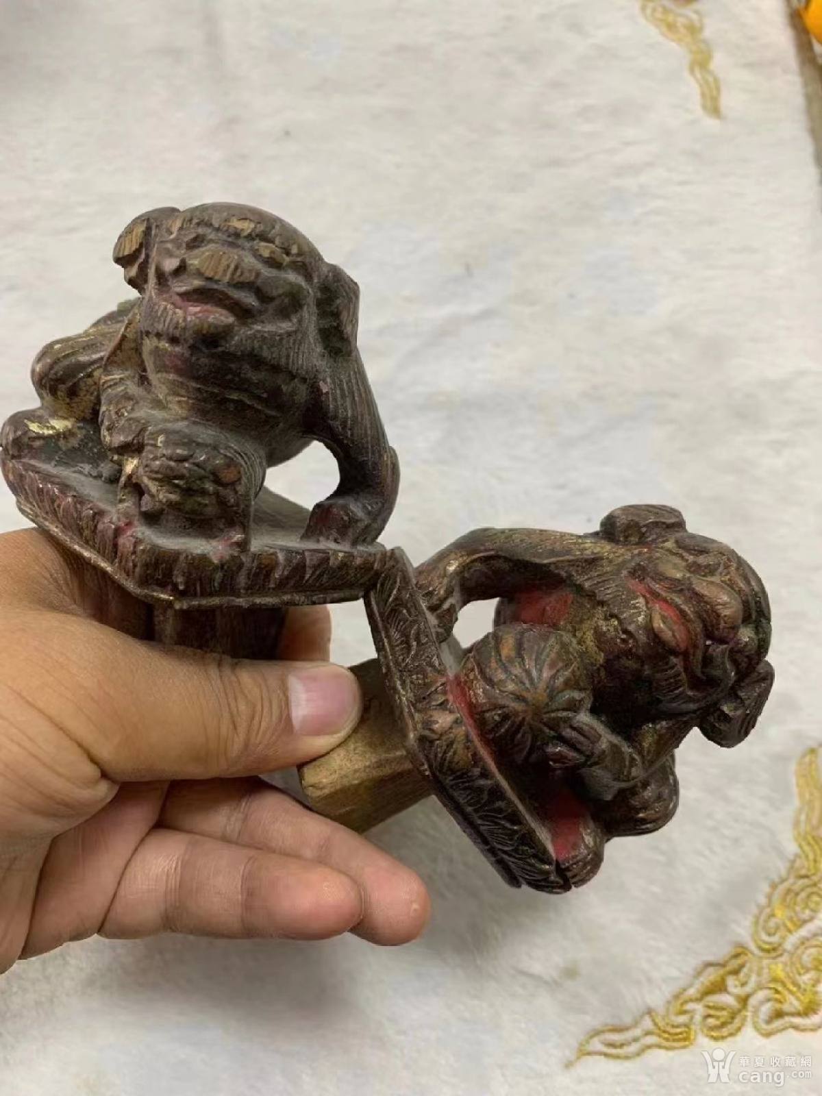 清代木雕狮子一对,